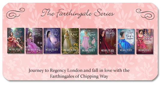 My full length books released or releasing in 2025 are: A Slight Problem With The Wedding (Farthingale series), Two Nights With The Duke, Snowfall and the Duke, Starlight and the Duke, Crash Landing On The Duke (all four in the Silver Dukes series), a novella called A Duke For The Taking (Wayward Dukes' Alliance connected series with other authors), and a novella called A Duke In Peril (in the Love's Perlious Road anthology). Yes, I seem to be mad about dukes lately. In 2026 we will start off with One Night With Tulip (Farthingale series) and the spin-off series from the Silver Dukes.